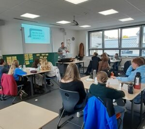 Nein zur digit@len Gewalt ist ein mehrfach ausgezeichnetes Präventionsprojekt, das Kinder und Jugendliche über verantwortungsvollen Medienkonsum, Gefahren im Internet sowie den Umgang mit Hass und Gewalt online aufklärt. Ein brisantes und hochaktuelles Thema, dass natürlich auch unsere Schülerschaft betrifft. Aus diesem Grund hat Frau Stade, unsere Schulsozialarbeiterin, Kontakt mit den Projektleitern aufgenommen und für mehrere Klassen eine Durchführung organisiert. So konnte im Juni 2025 und noch einmal direkt nach den Herbstferien in vier 7. Klassen das Ganztagesprogramm praktisch abgehalten werden.